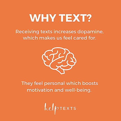 I've now learned that text messages boost motivation. Unlike when we see app alerts or email pouring into our inboxes, receiving a text message feels good. It increases dopamine, which makes us feel cared for, which in turn boosts motivation and well-being.